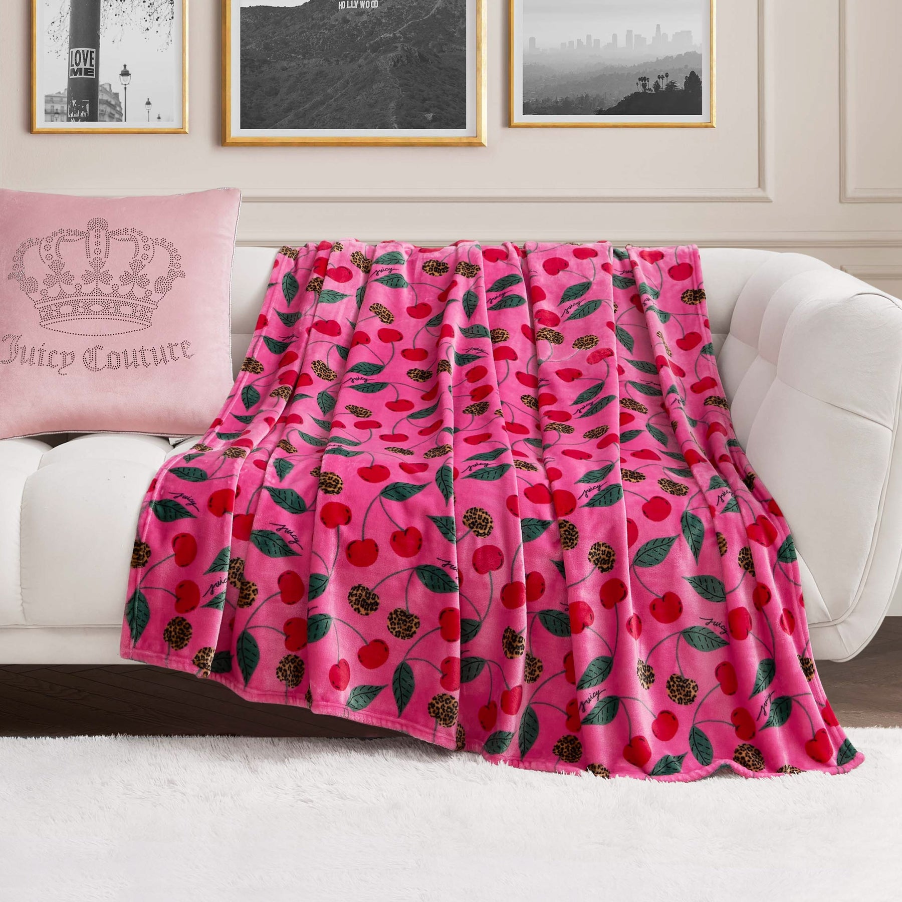 Cleaning and Caring for Your Juicy Couture Throw: Your Juicy Couture throw has been designed with machine washable fibers to make its upkeep and care simple. The sturdy fiber is capable of withstanding numerous washes while maintaining its silky feel and vivid appearance as well as hygienic/ professional appearance. and its "easy care" quality guarantees the attached luxurious accents are safe and hygienic without difficult maintenance!