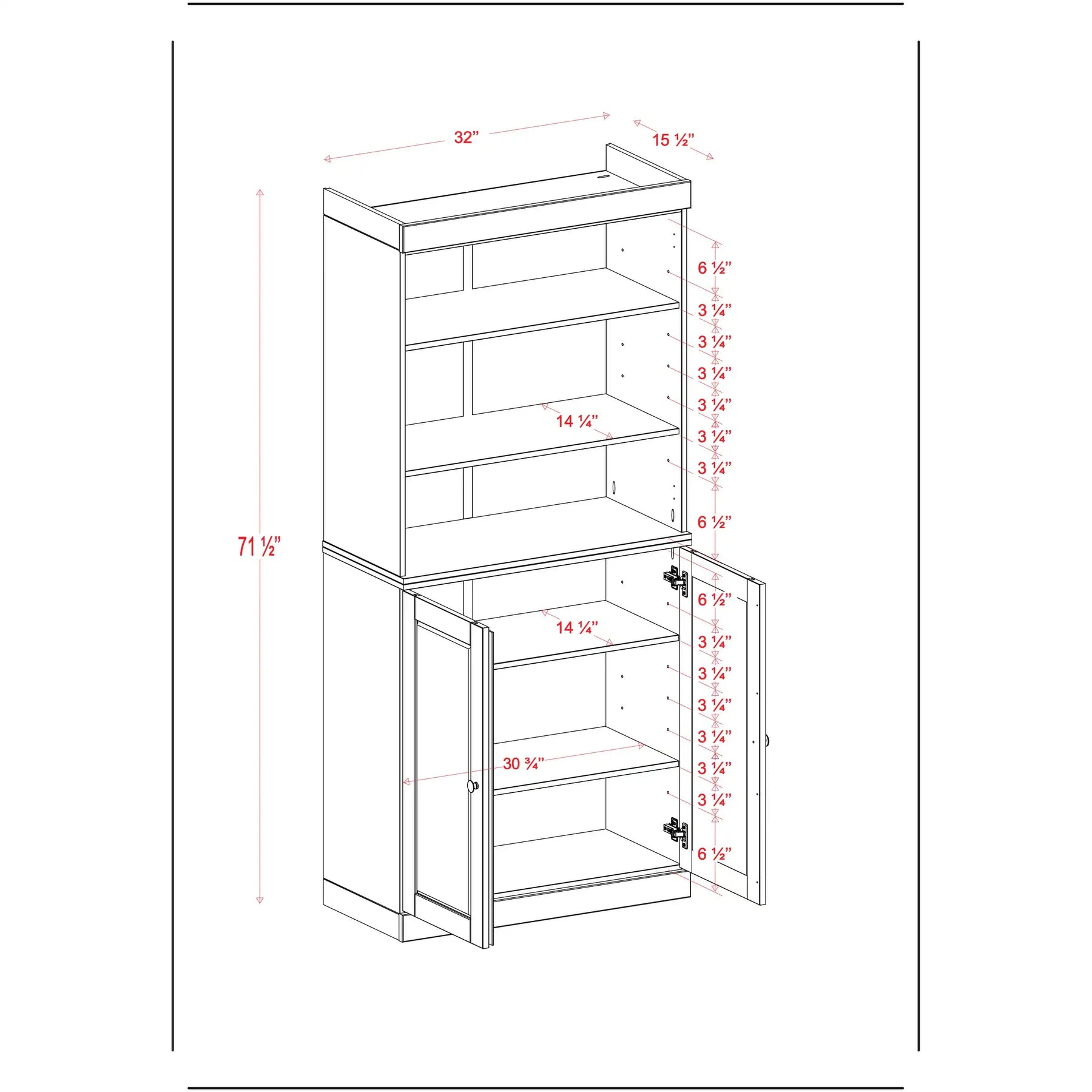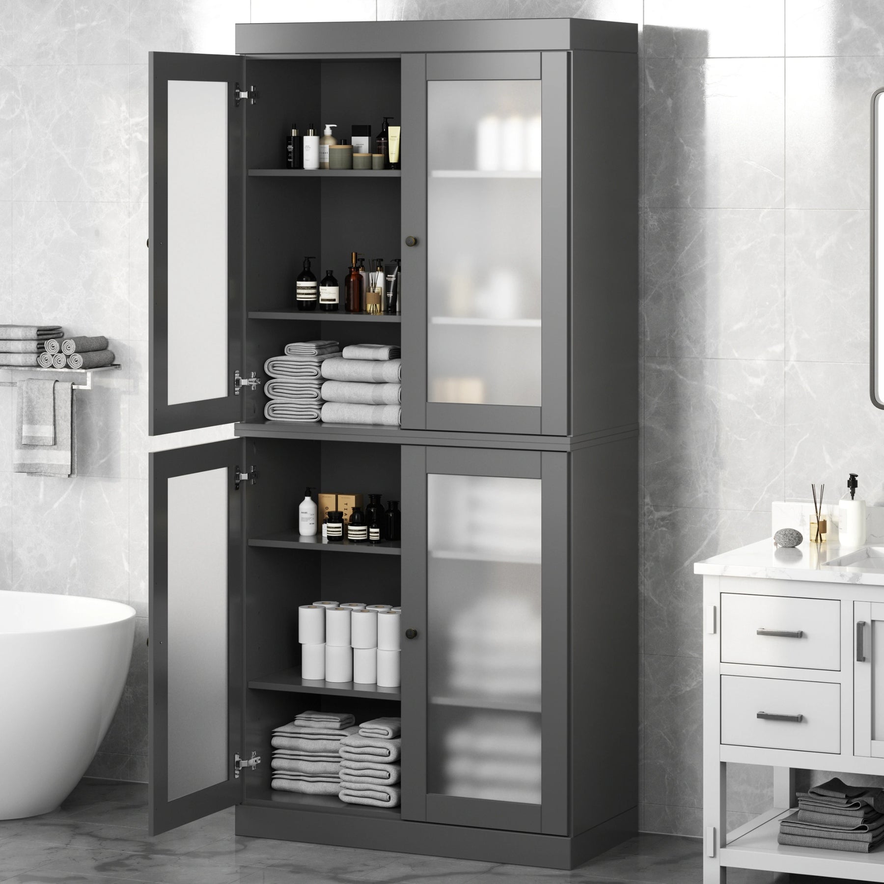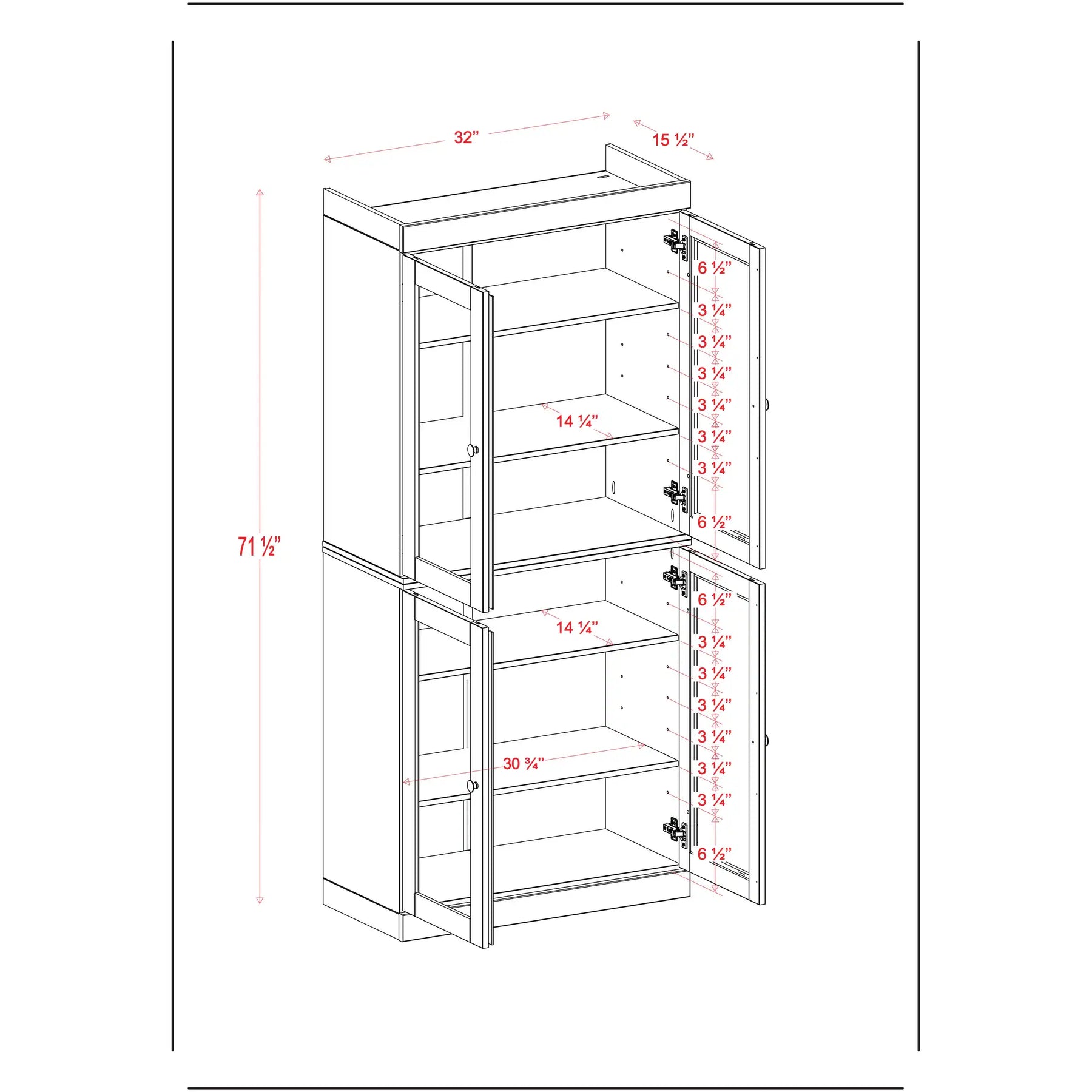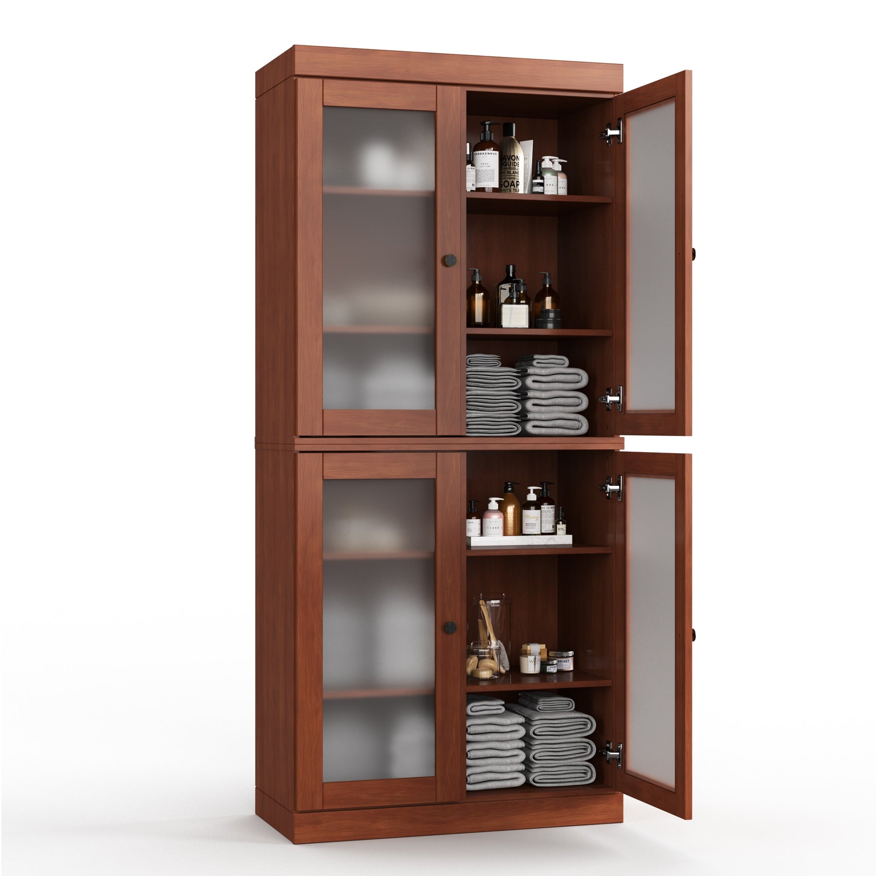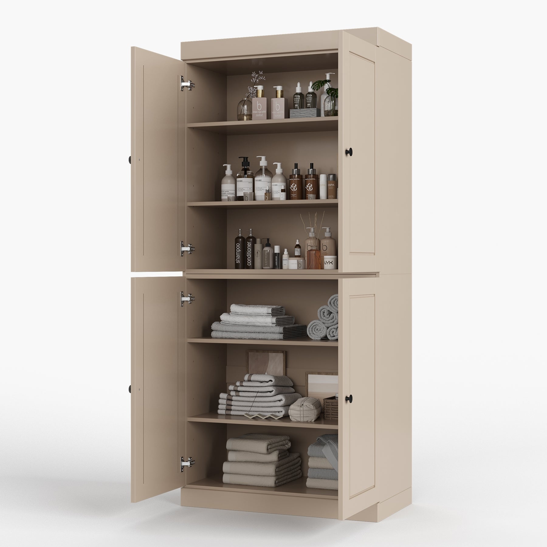 100% Solid Wood Bathroom & Laundry Storage Cabinet, Raised Panel Doors, Adjustable Shelves, 32" Wide, 71.5" Tall