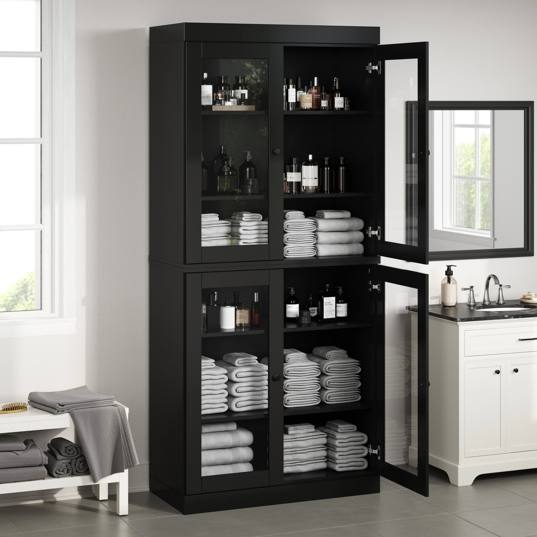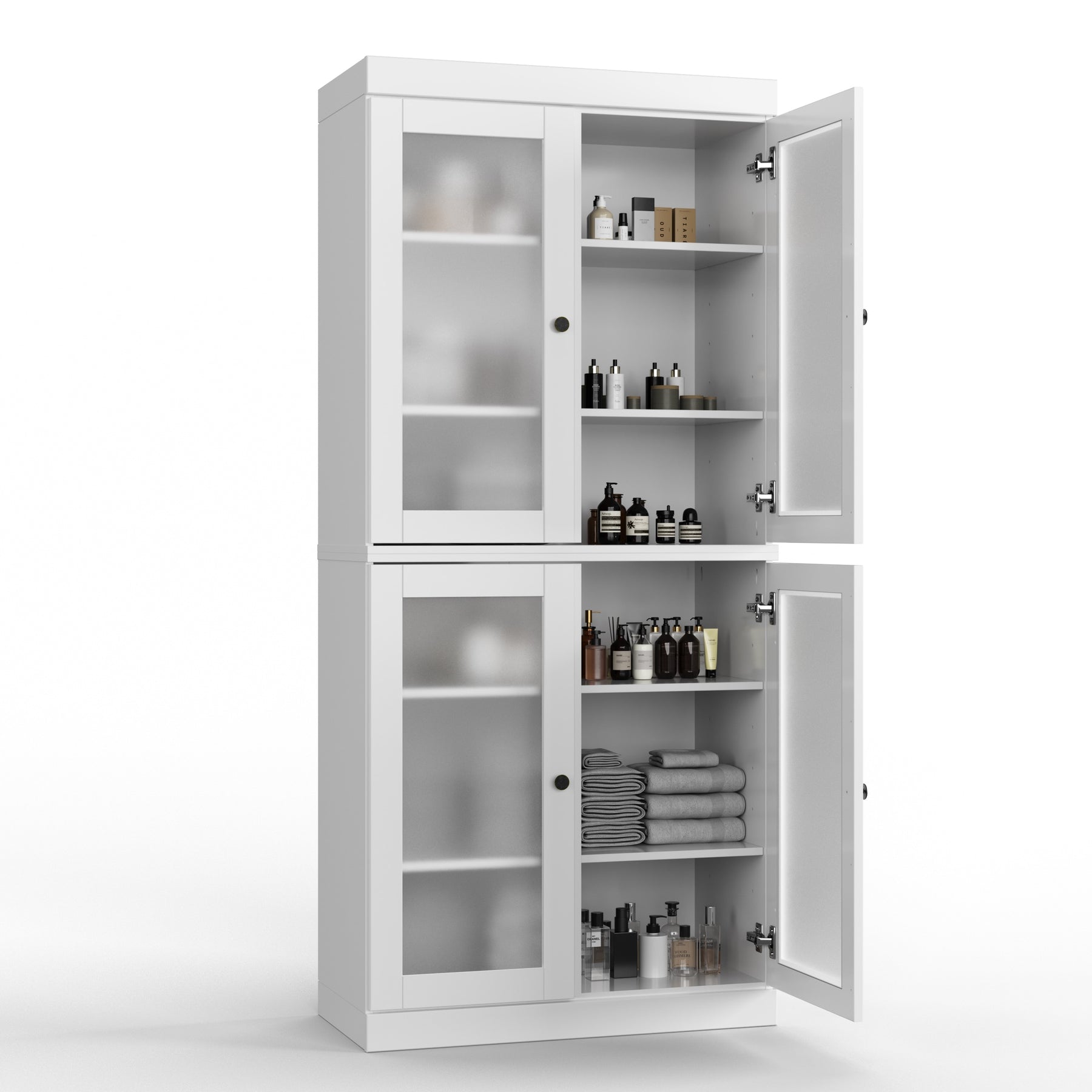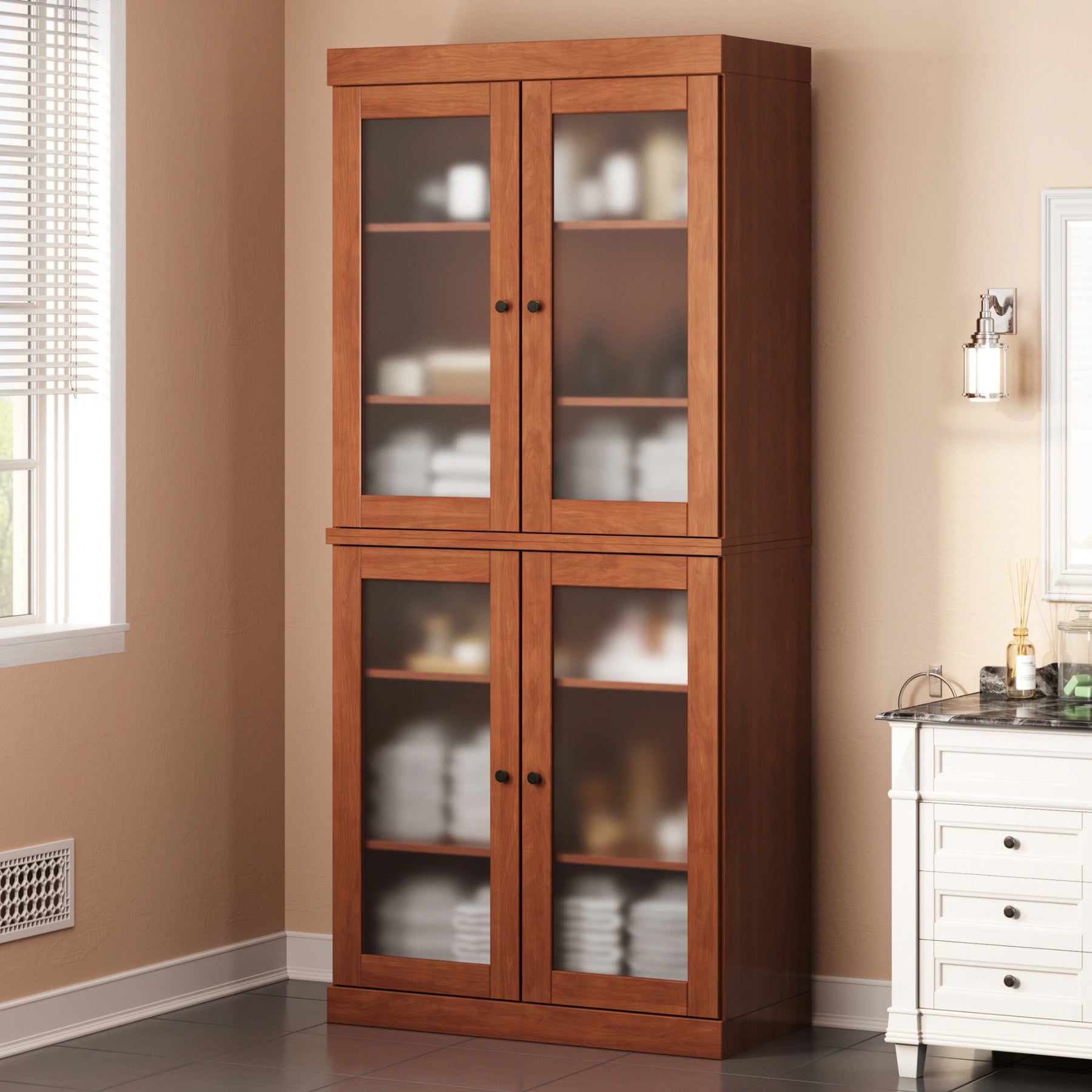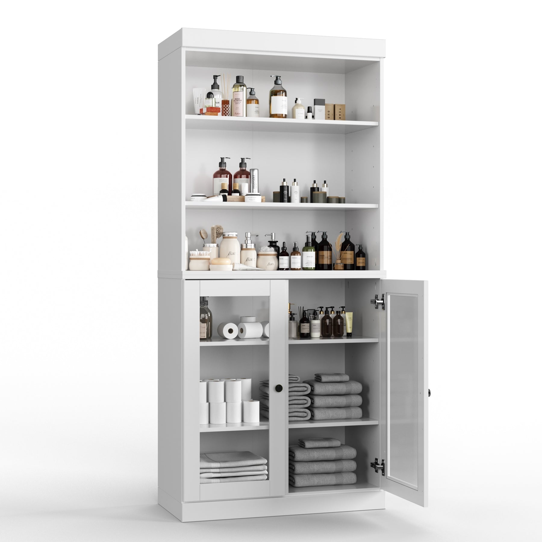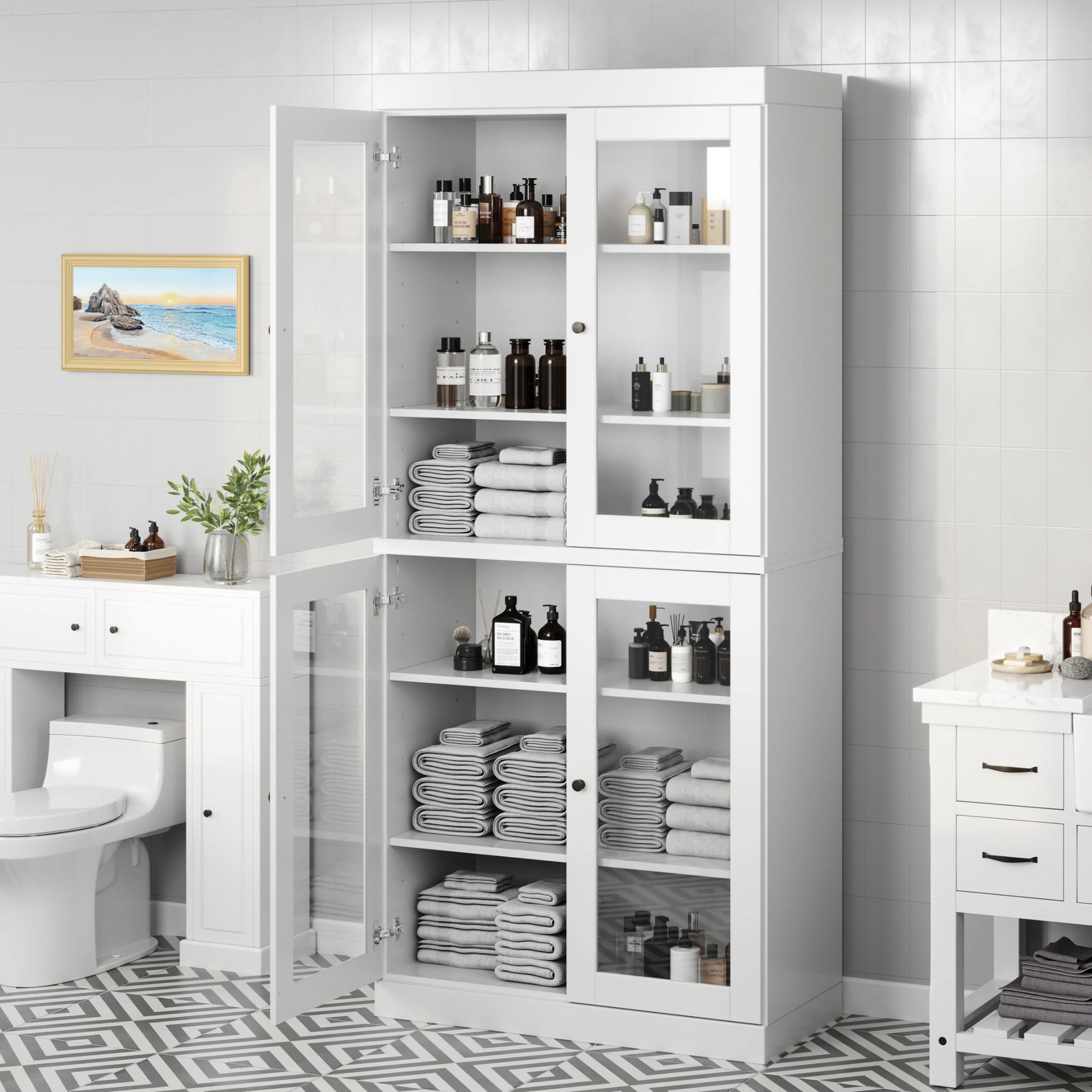 100% Solid Wood Bathroom & Laundry Storage Cabinet, Raised Panel Doors, Adjustable Shelves, 32" Wide, 71.5" Tall
