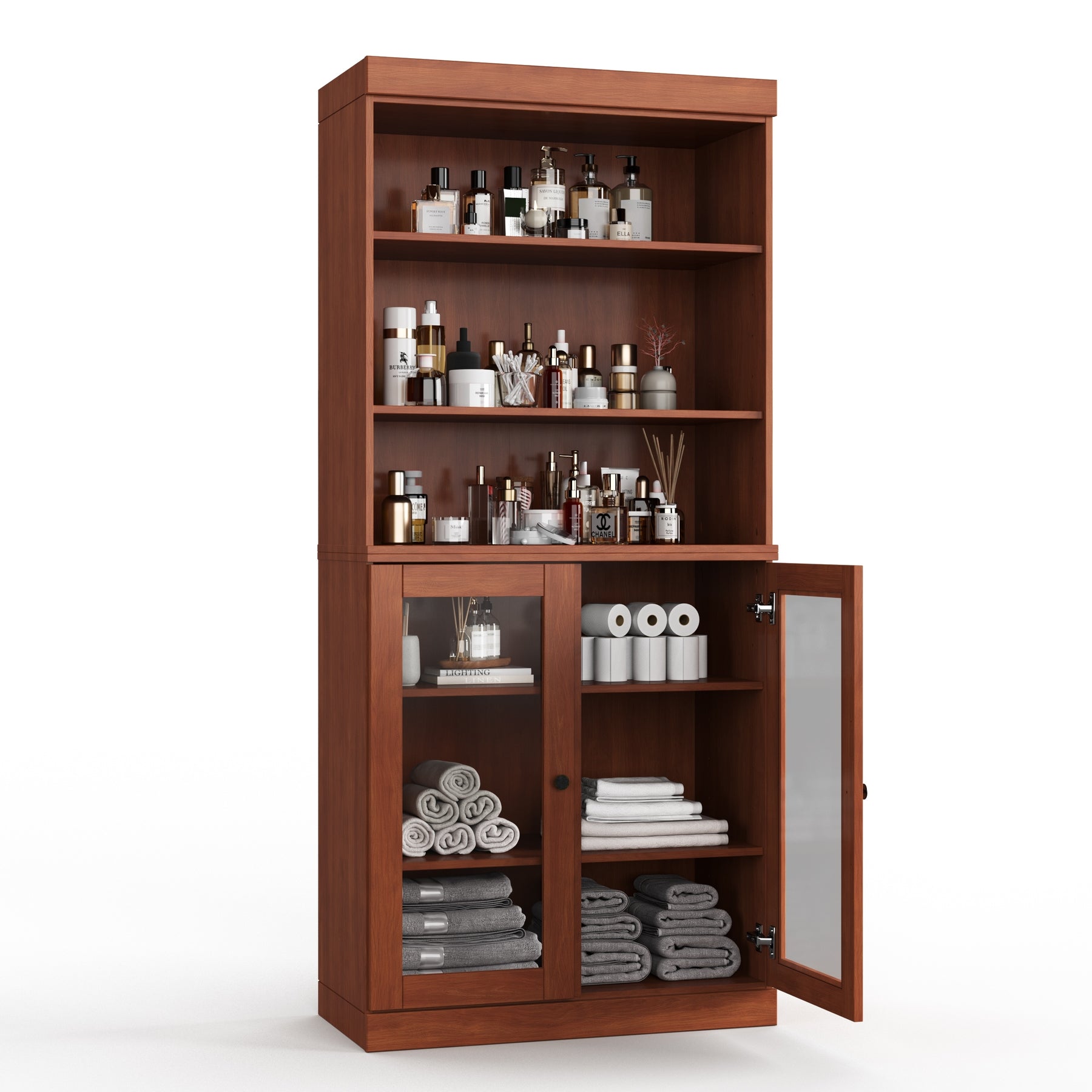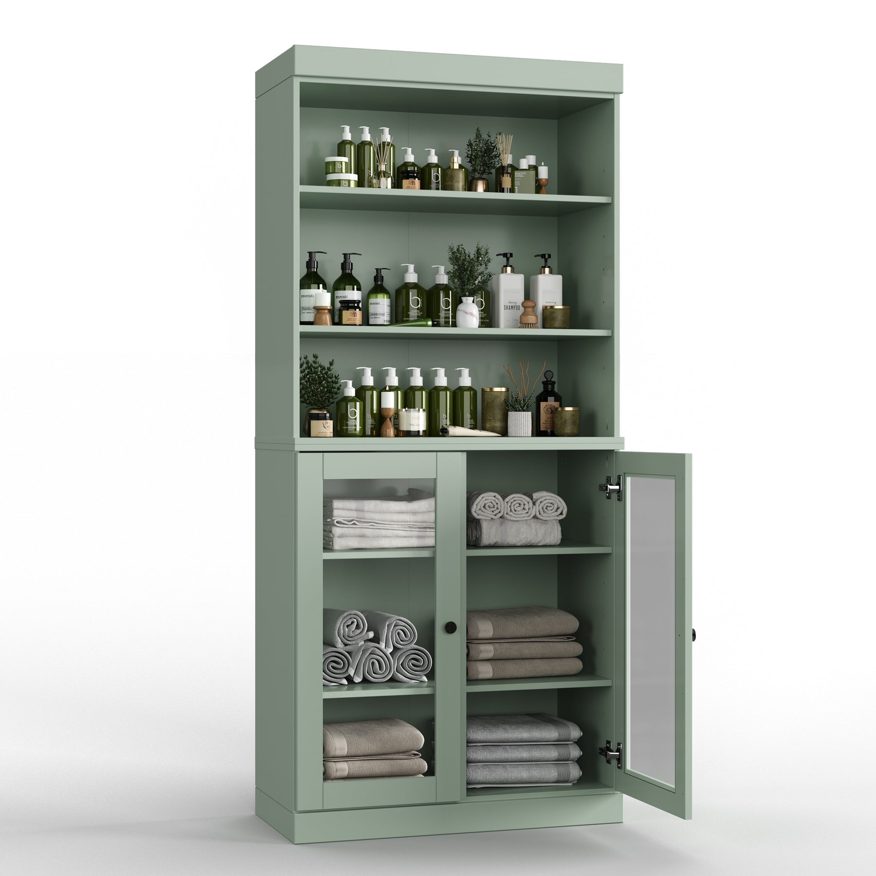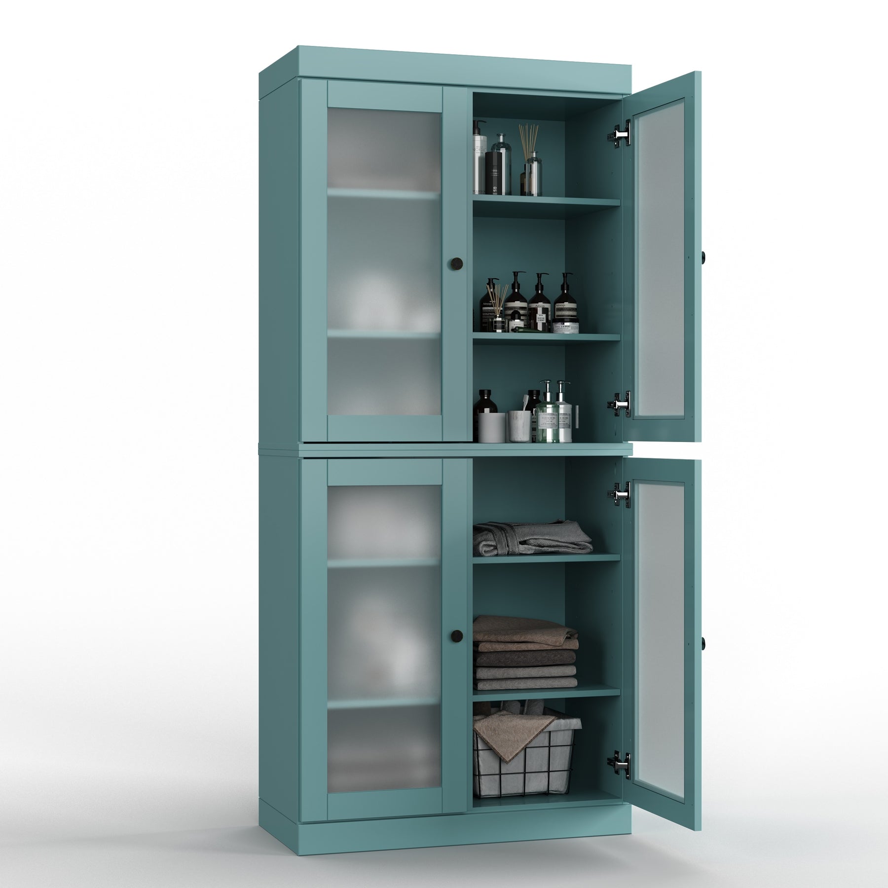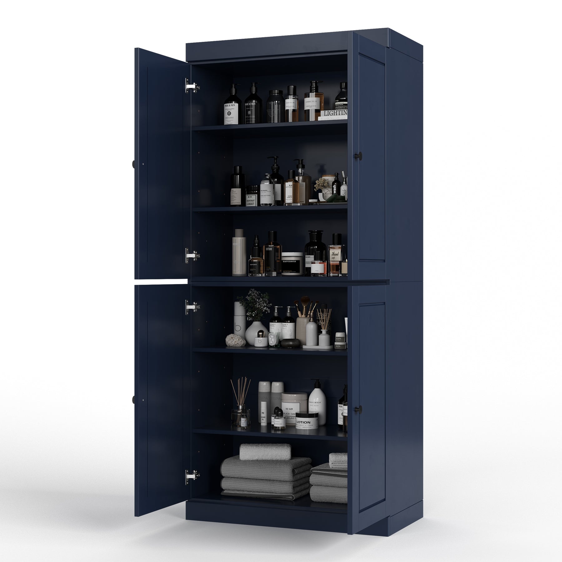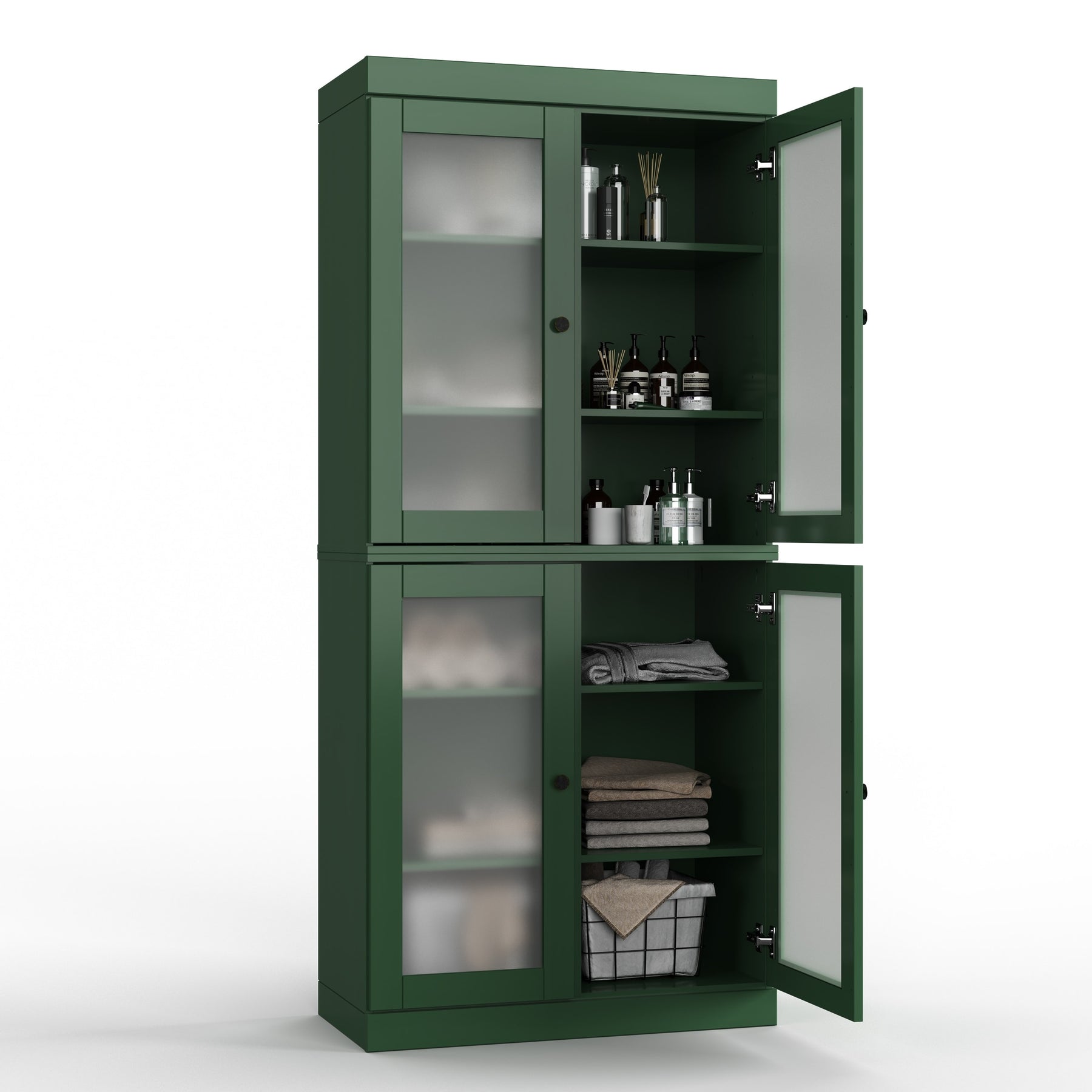 100% Solid Wood Bathroom & Laundry Storage Cabinet, Raised Panel Doors, Adjustable Shelves, 32" Wide, 71.5" Tall