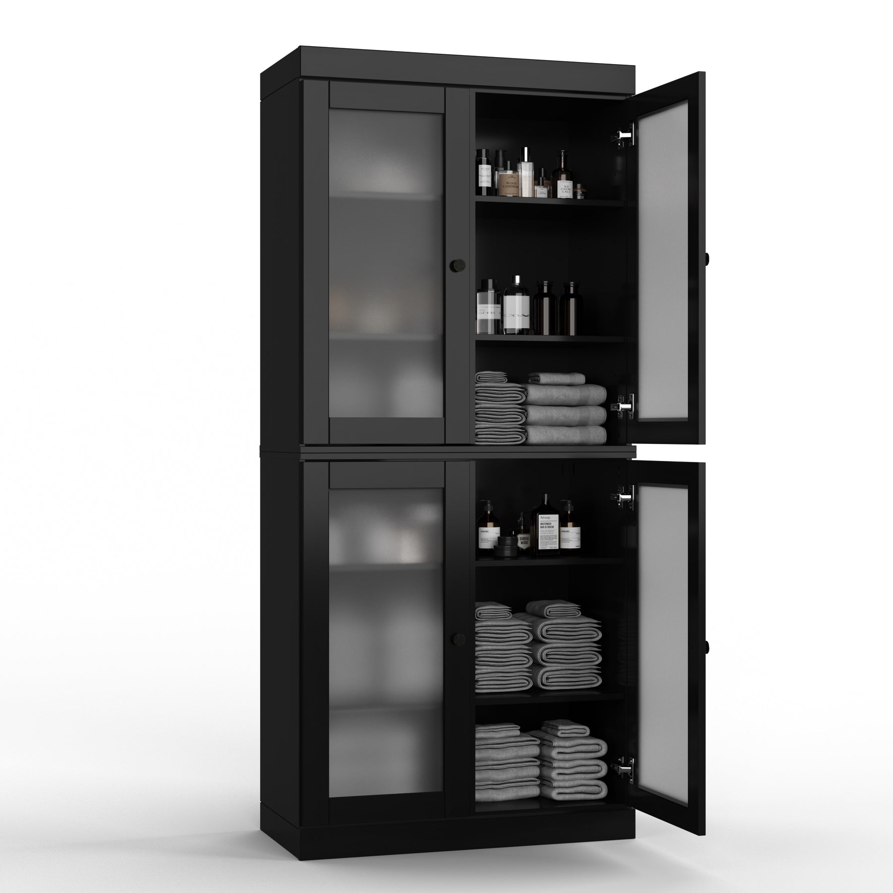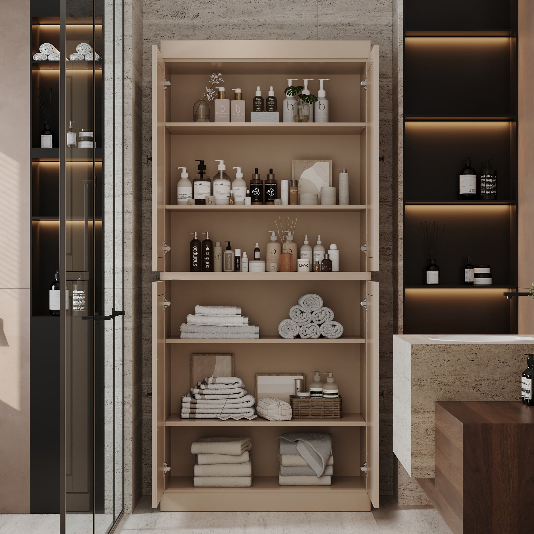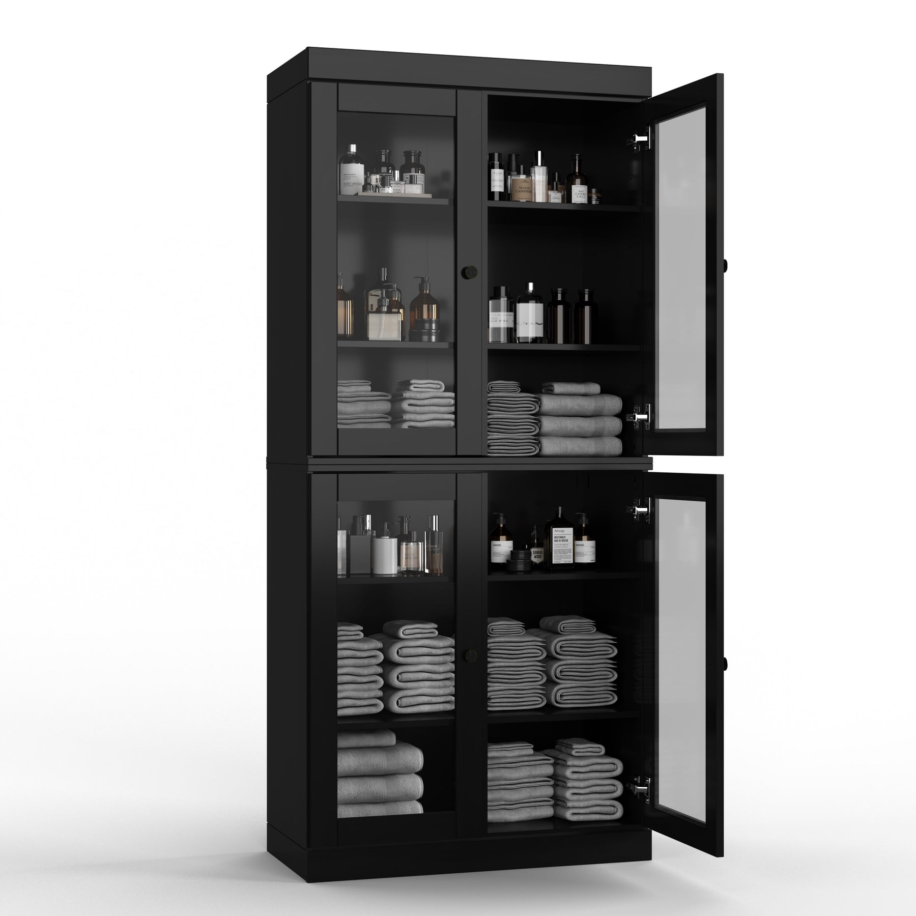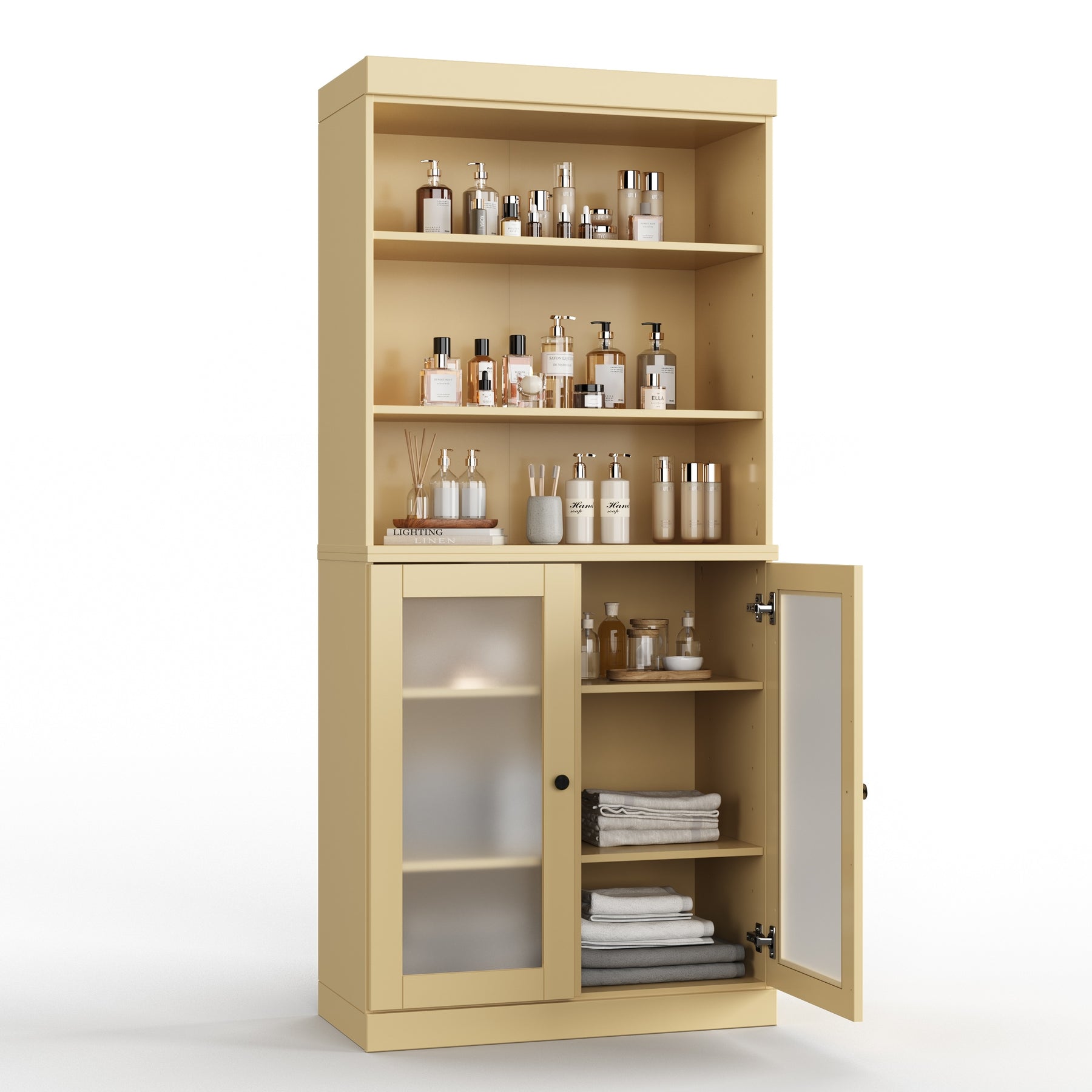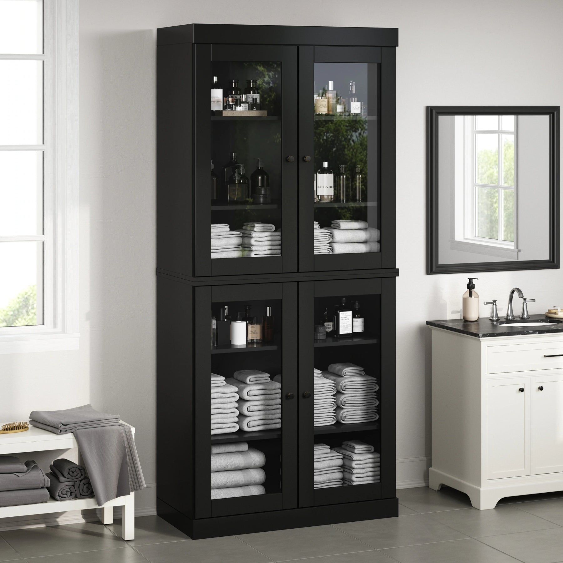 100% Solid Wood Bathroom & Laundry Storage Cabinet, Raised Panel Doors, Adjustable Shelves, 32" Wide, 71.5" Tall