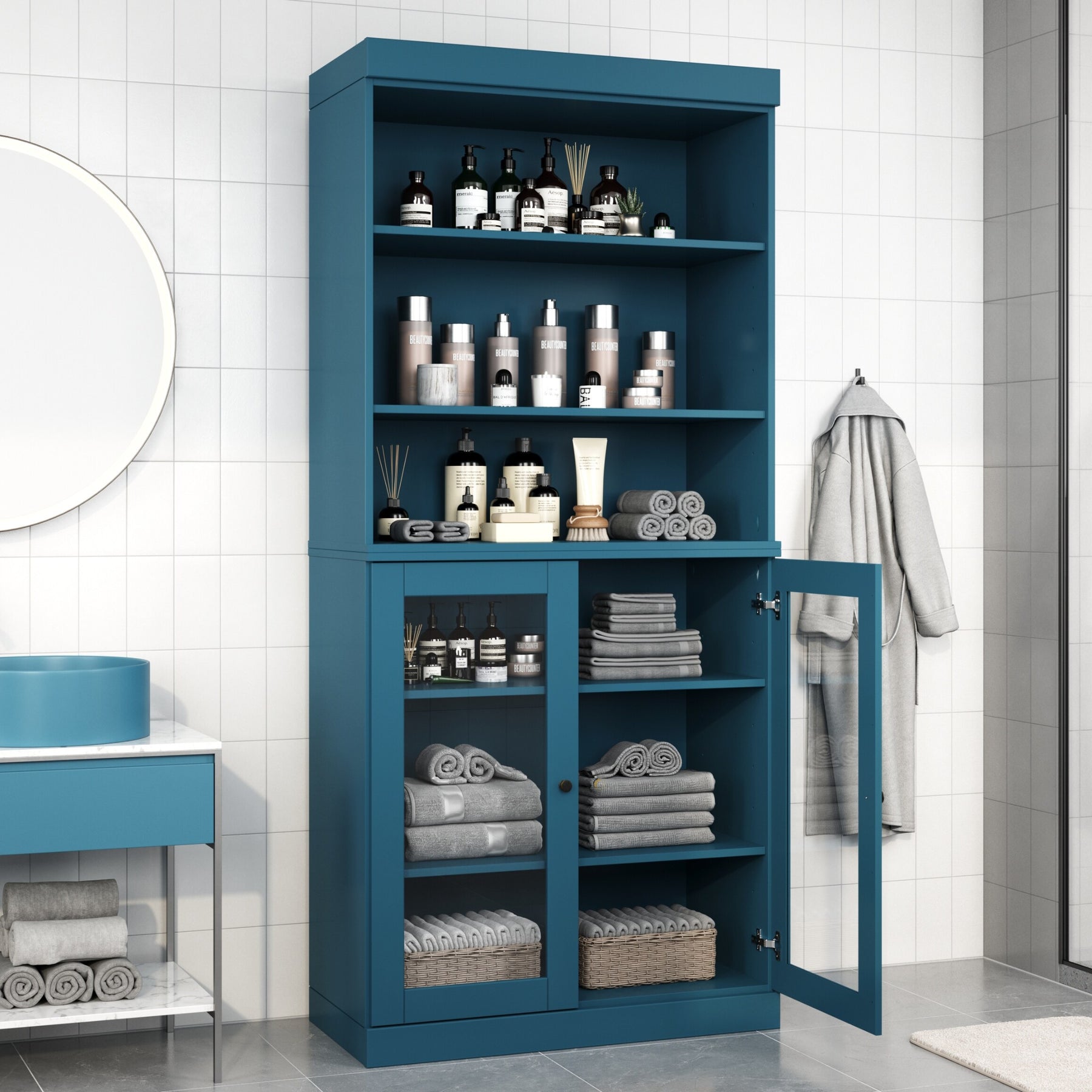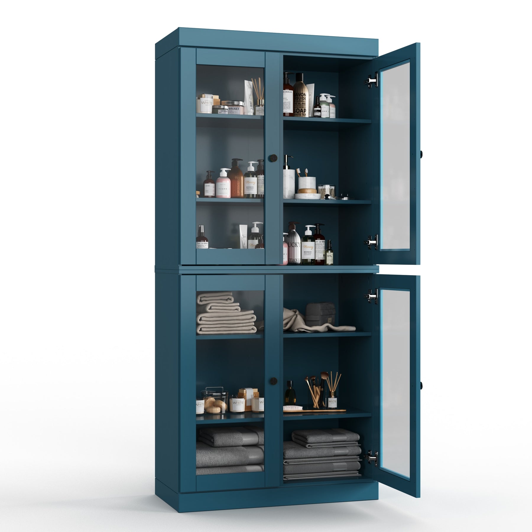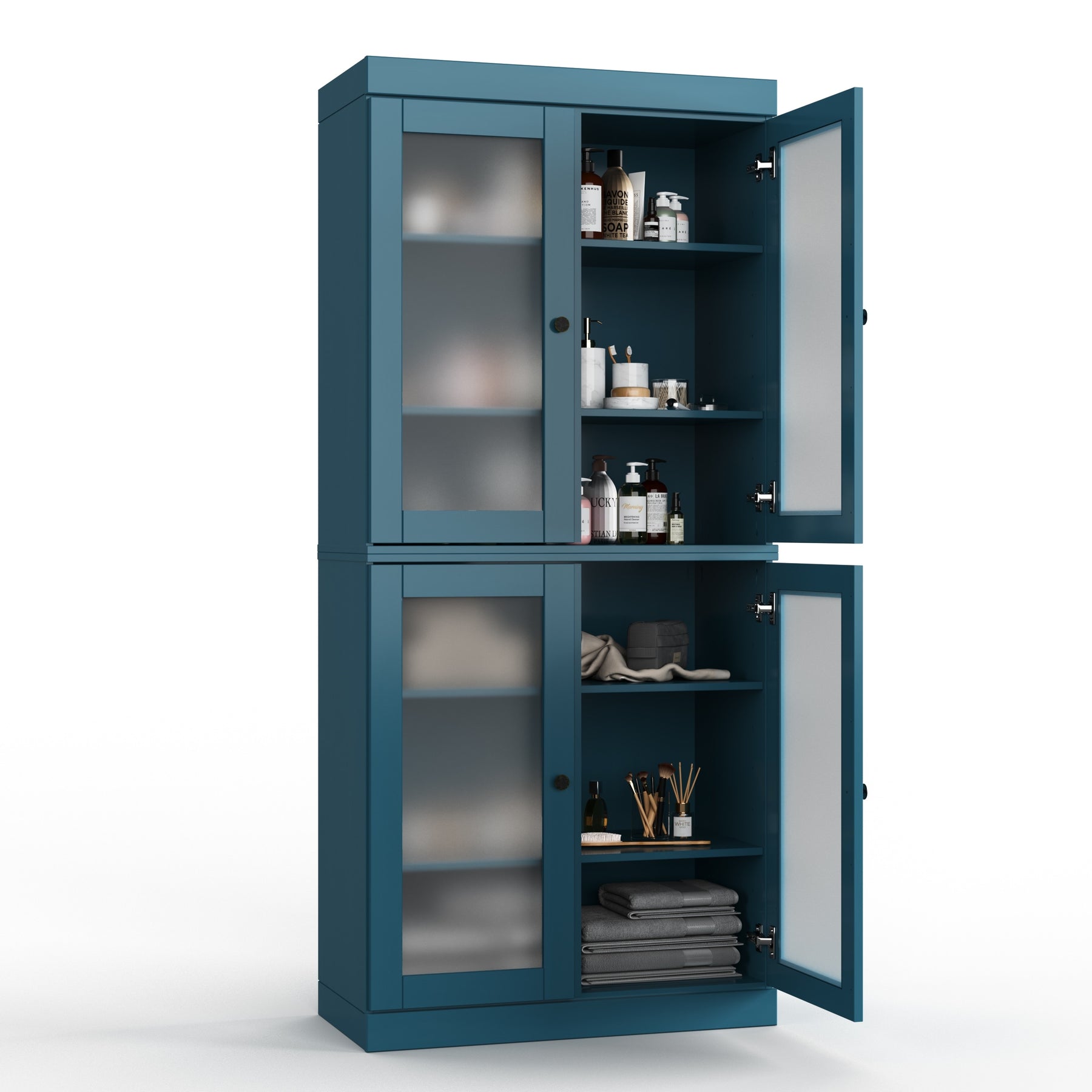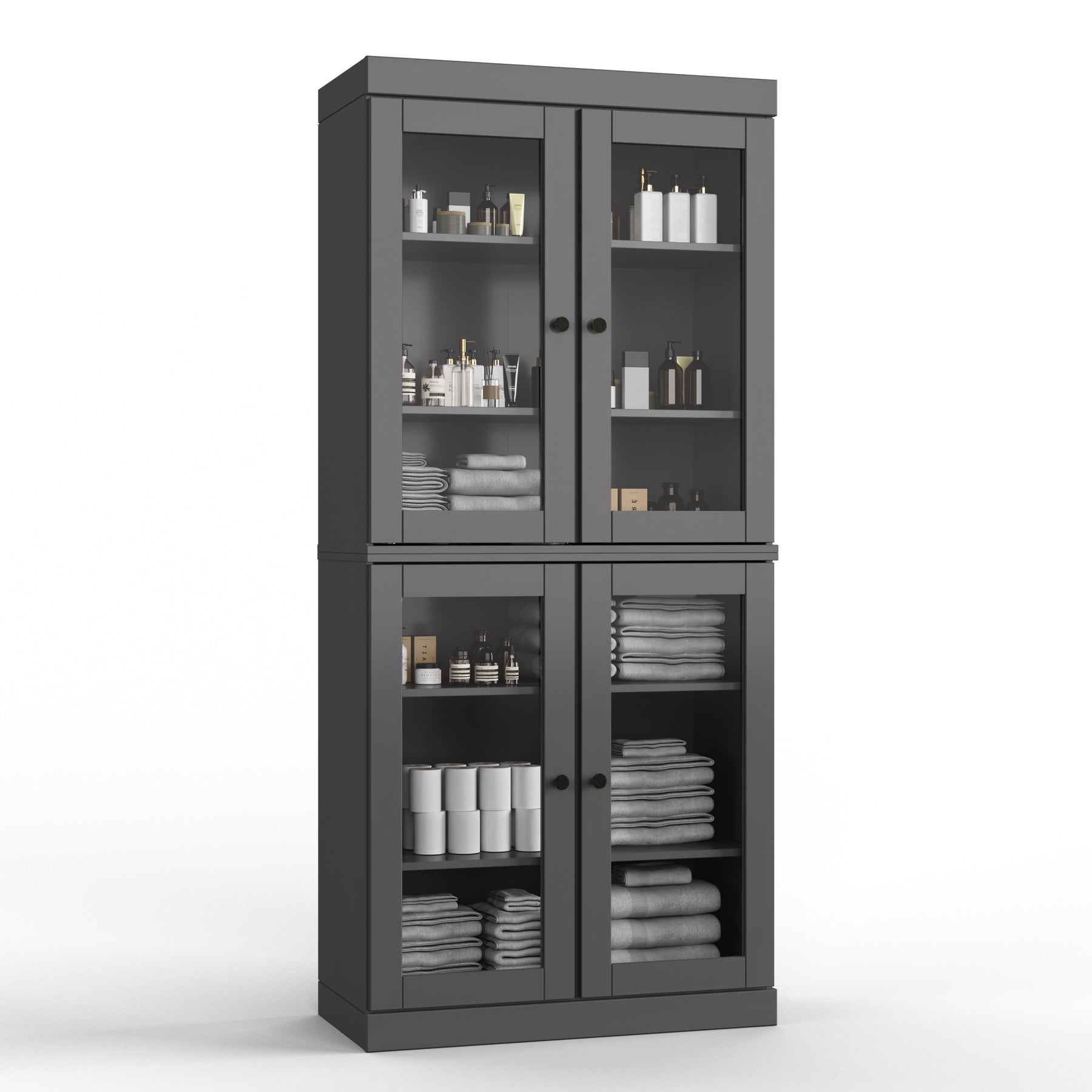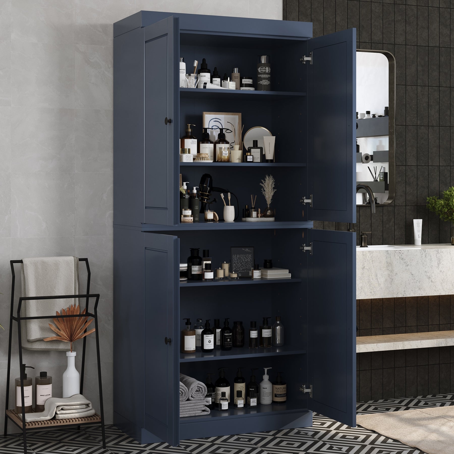 100% Solid Wood Bathroom & Laundry Storage Cabinet, Raised Panel Doors, Adjustable Shelves, 32" Wide, 71.5" Tall