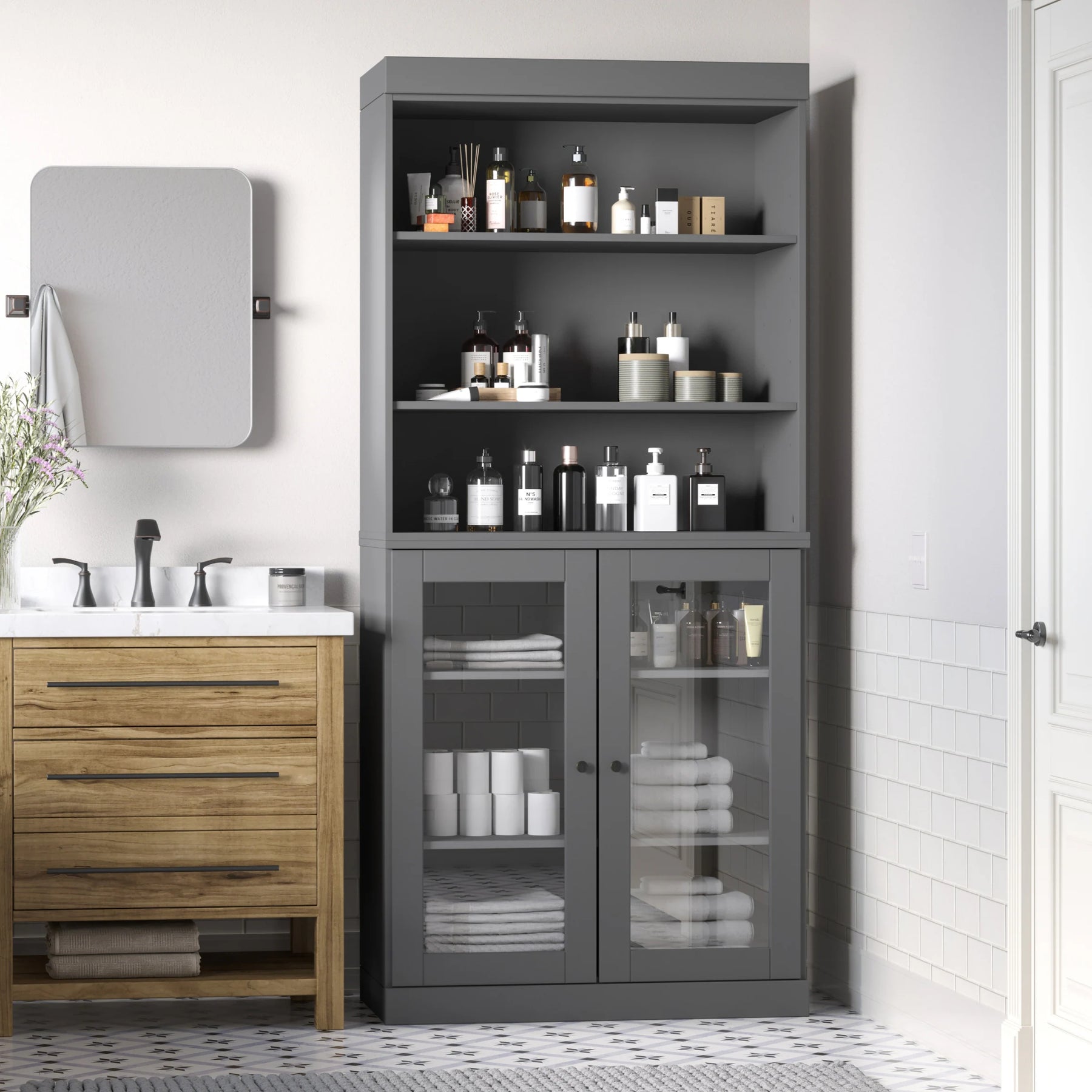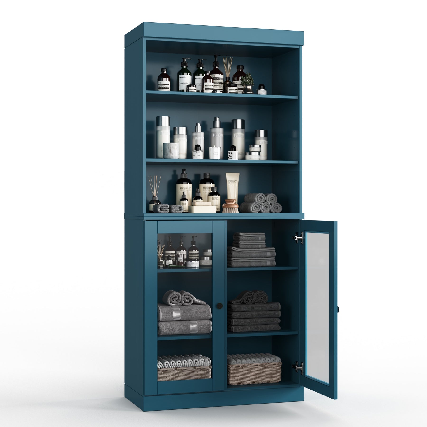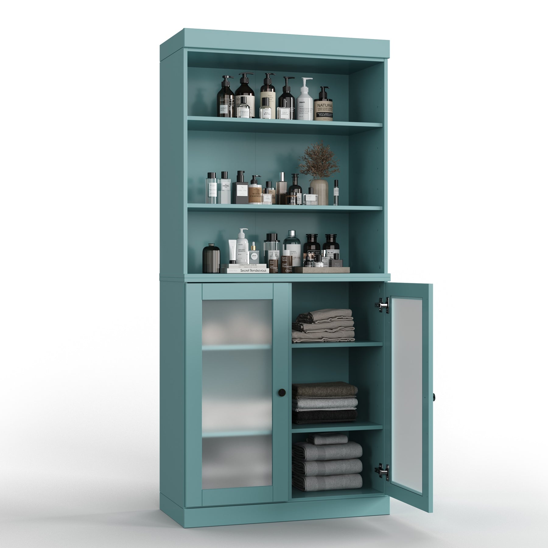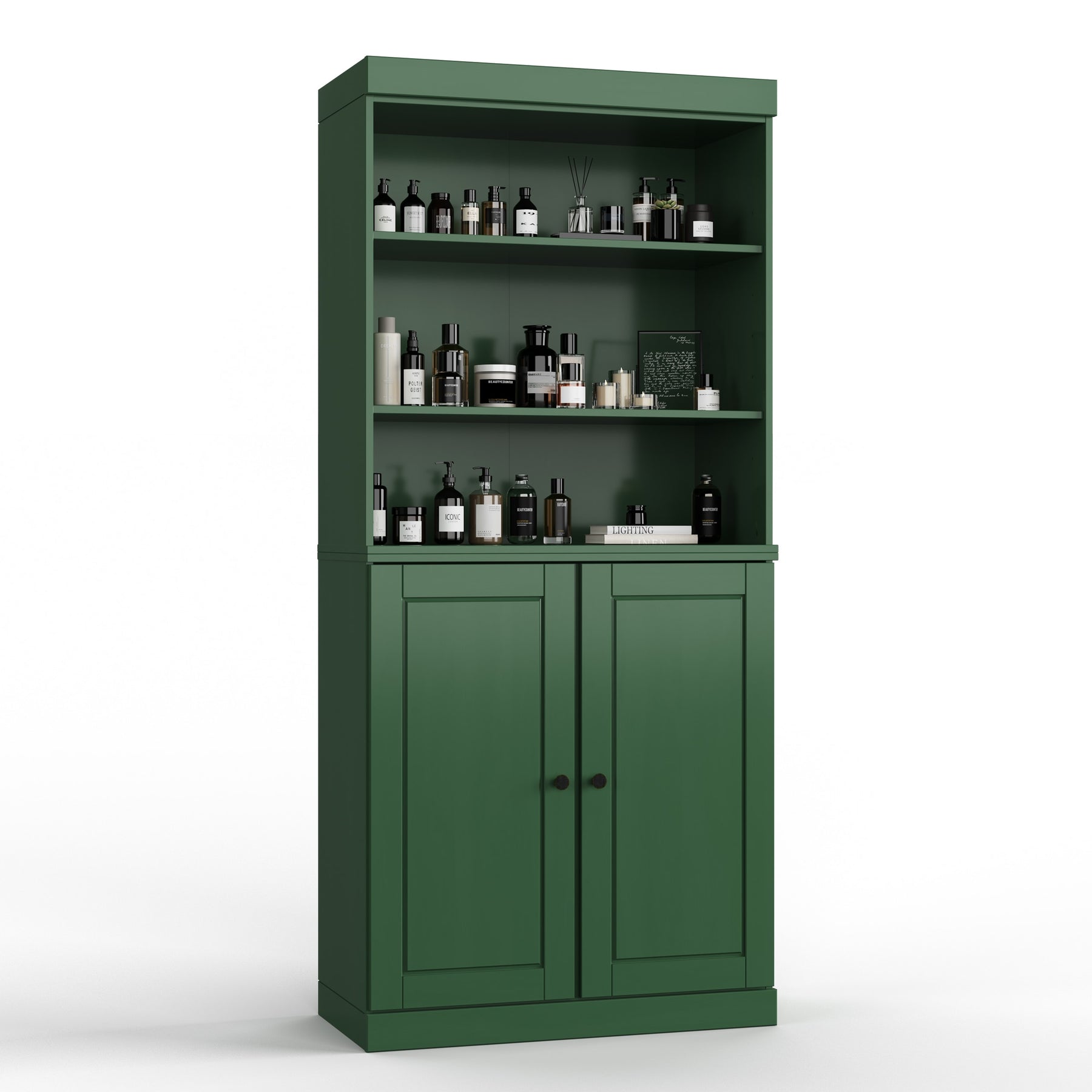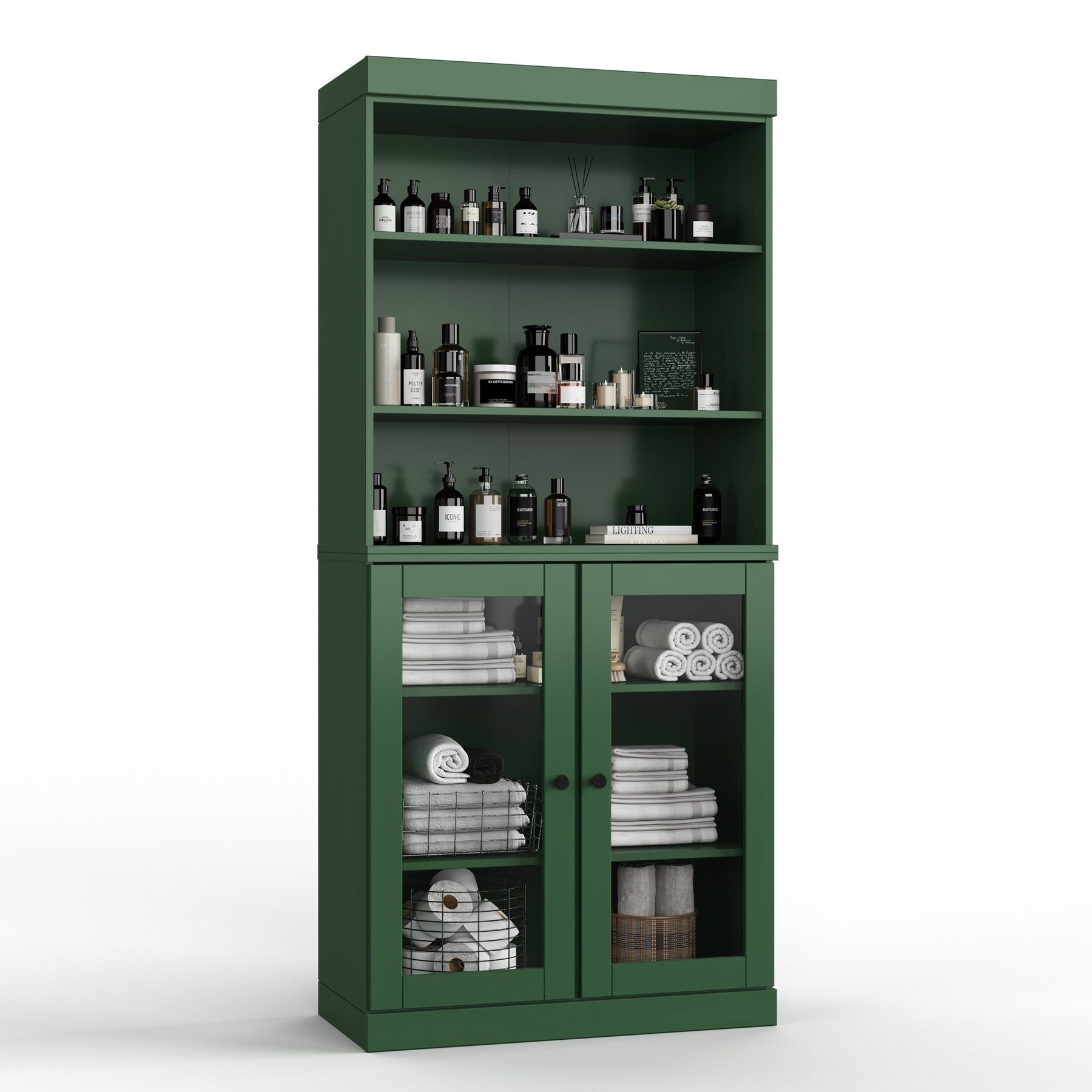 100% Solid Wood Bathroom & Laundry Storage Cabinet, Raised Panel Doors, Adjustable Shelves, 32" Wide, 71.5" Tall