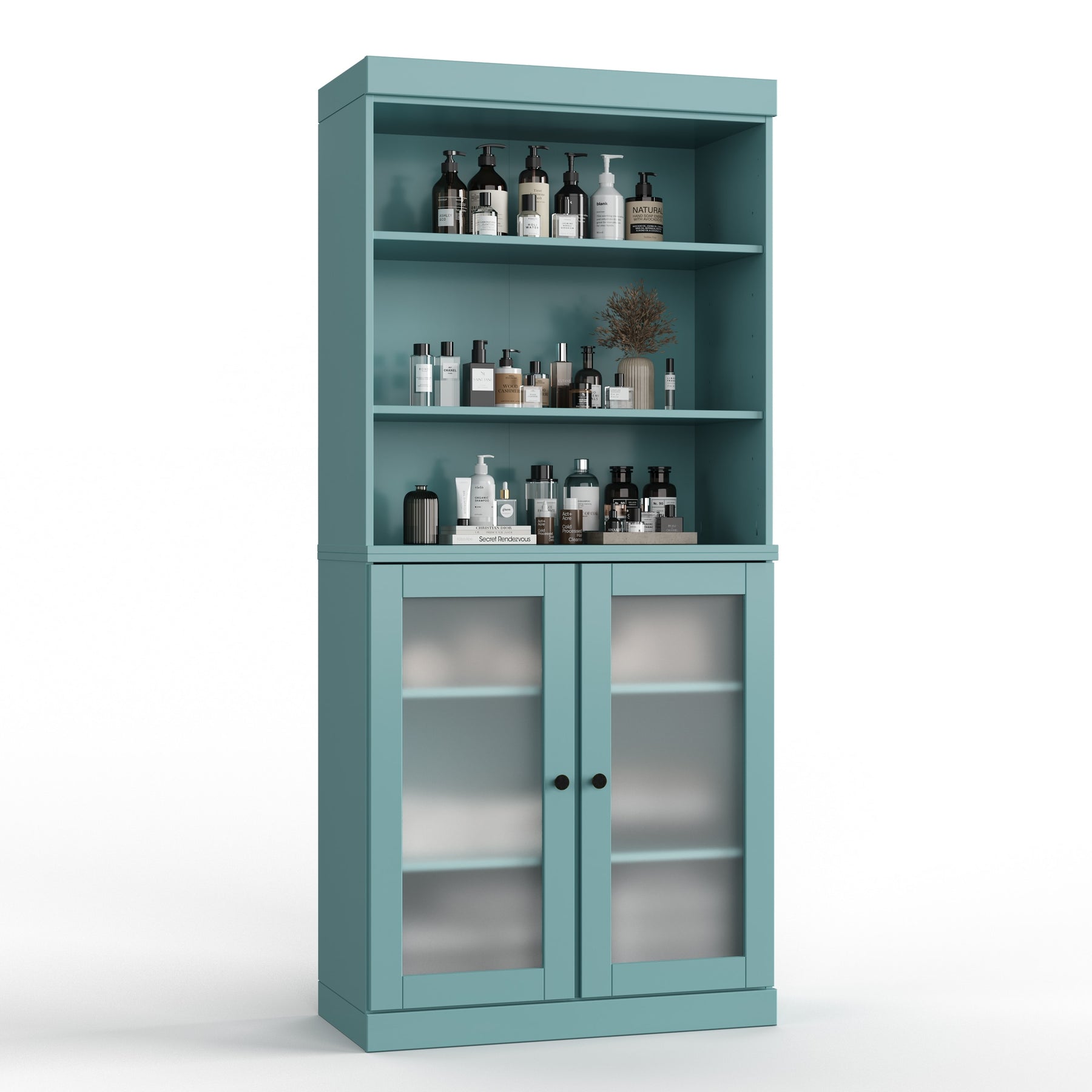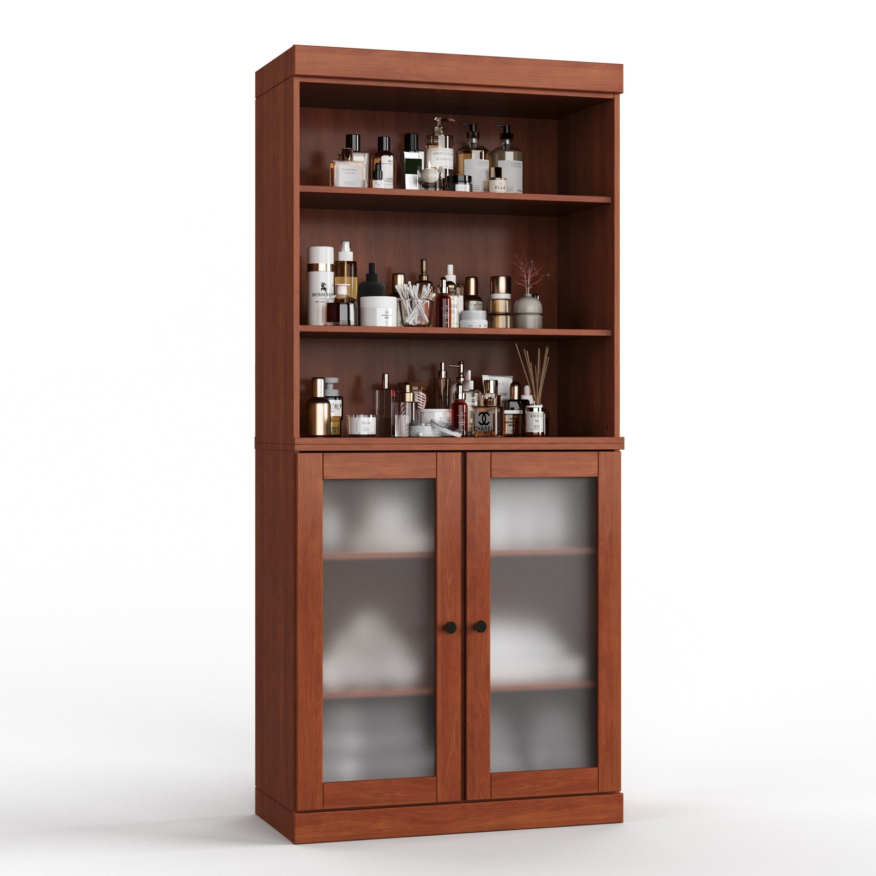 Relish the gentle closure of the European soft closing stainless steel hinges. Everything about the attention to detail on this weightless yet robust fixture speaks of a quality about it that would have you believe you are working with solid wood rather than a piece of furniture. The bronze knobs are arranged so that they are removable and can be replaced to match your decor. Closed back plywood panels adorn the unit giving it a perfect professional finish.