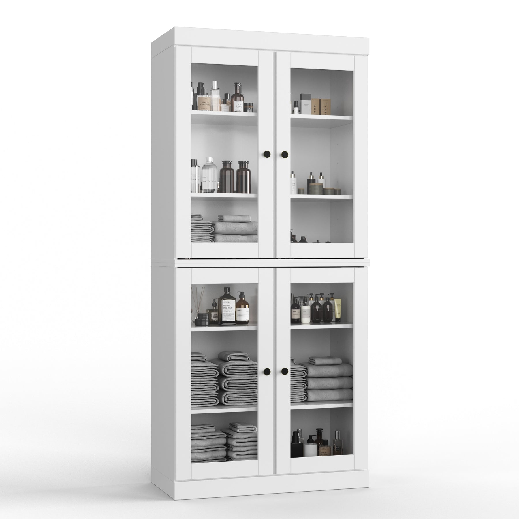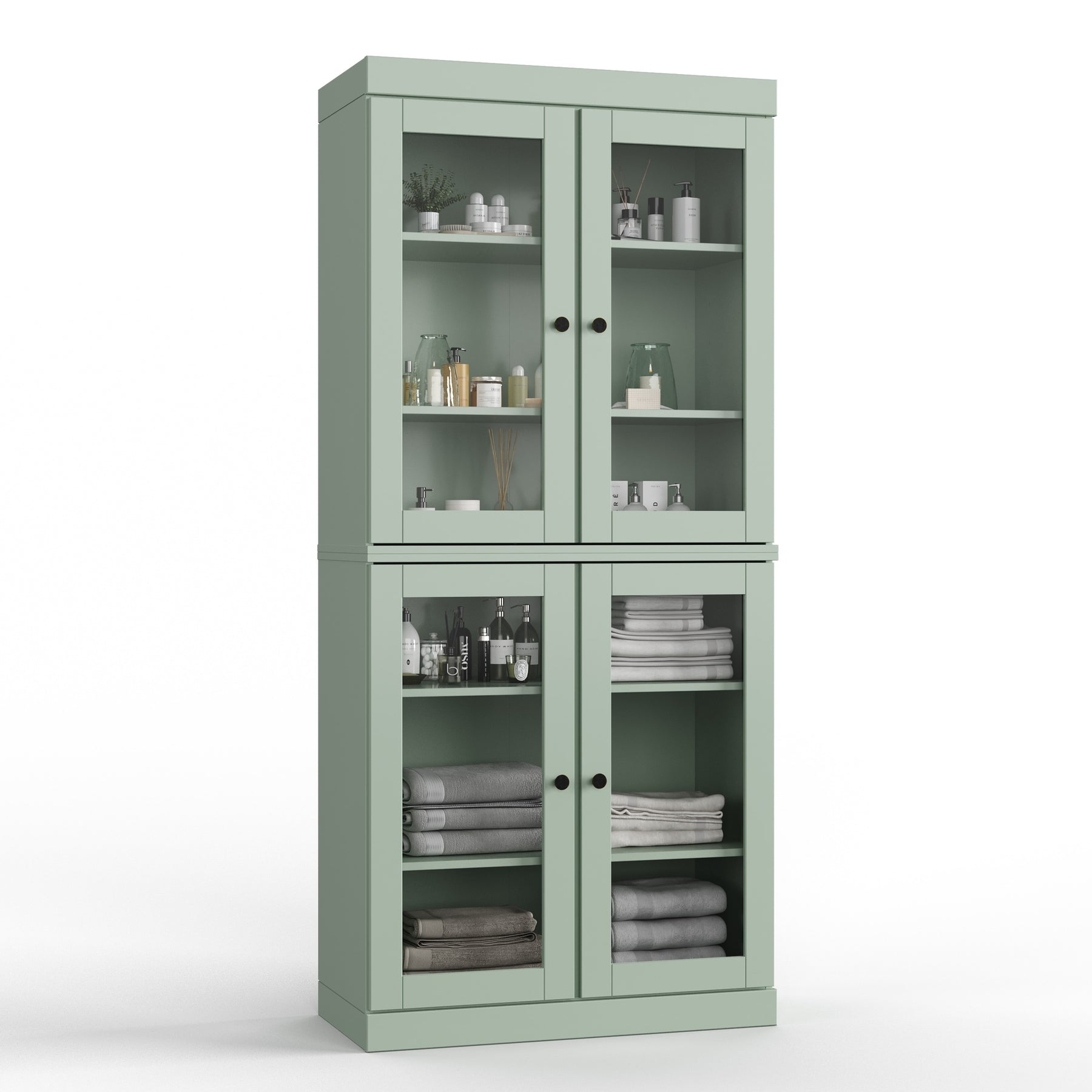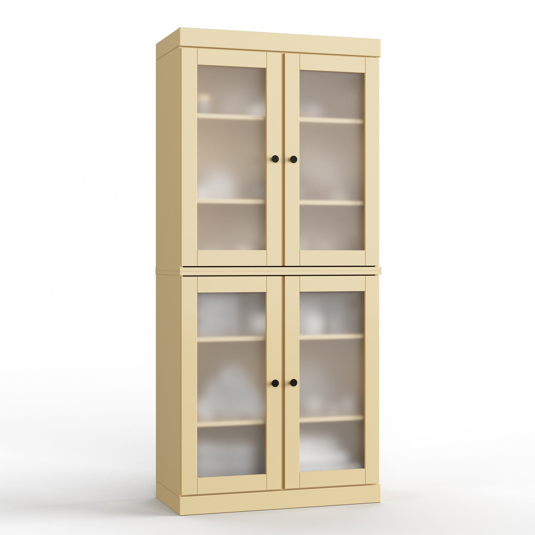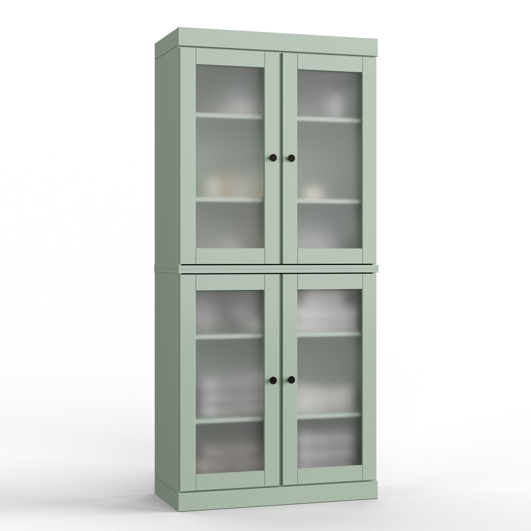 Four removable and adjustable shelves maximize your organizational efficiency. Supported by 16 heavy,duty metal pegs, you'll have the freedom to change the interior to hold anything from long bottles of cleaning supplies to stacked dinnerware. The stackable design also gives you the flexibility to break down the set into separate sideboards should your needs change.