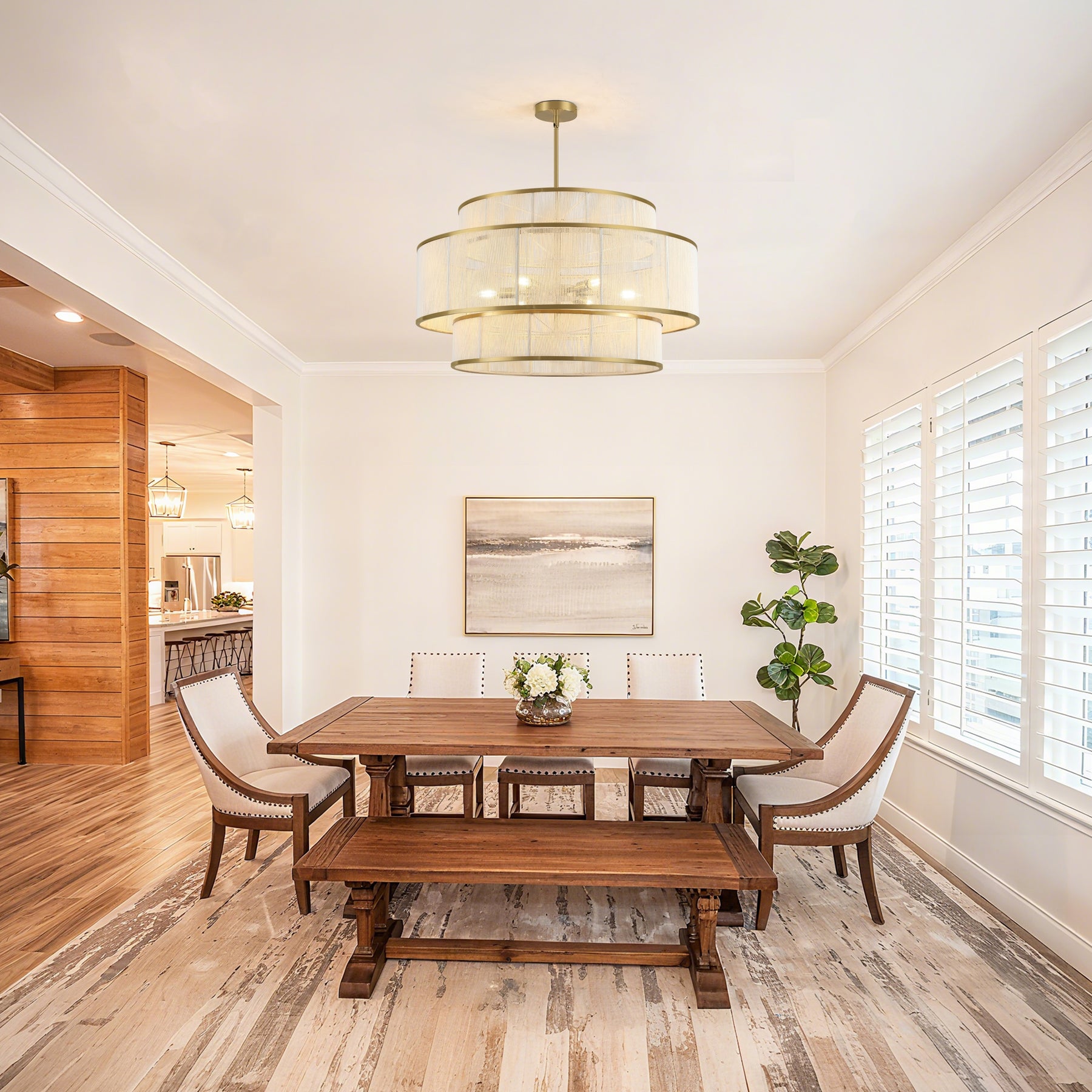 6-Light Dimmable Tiered Drum Chandelier - Brushed Gold