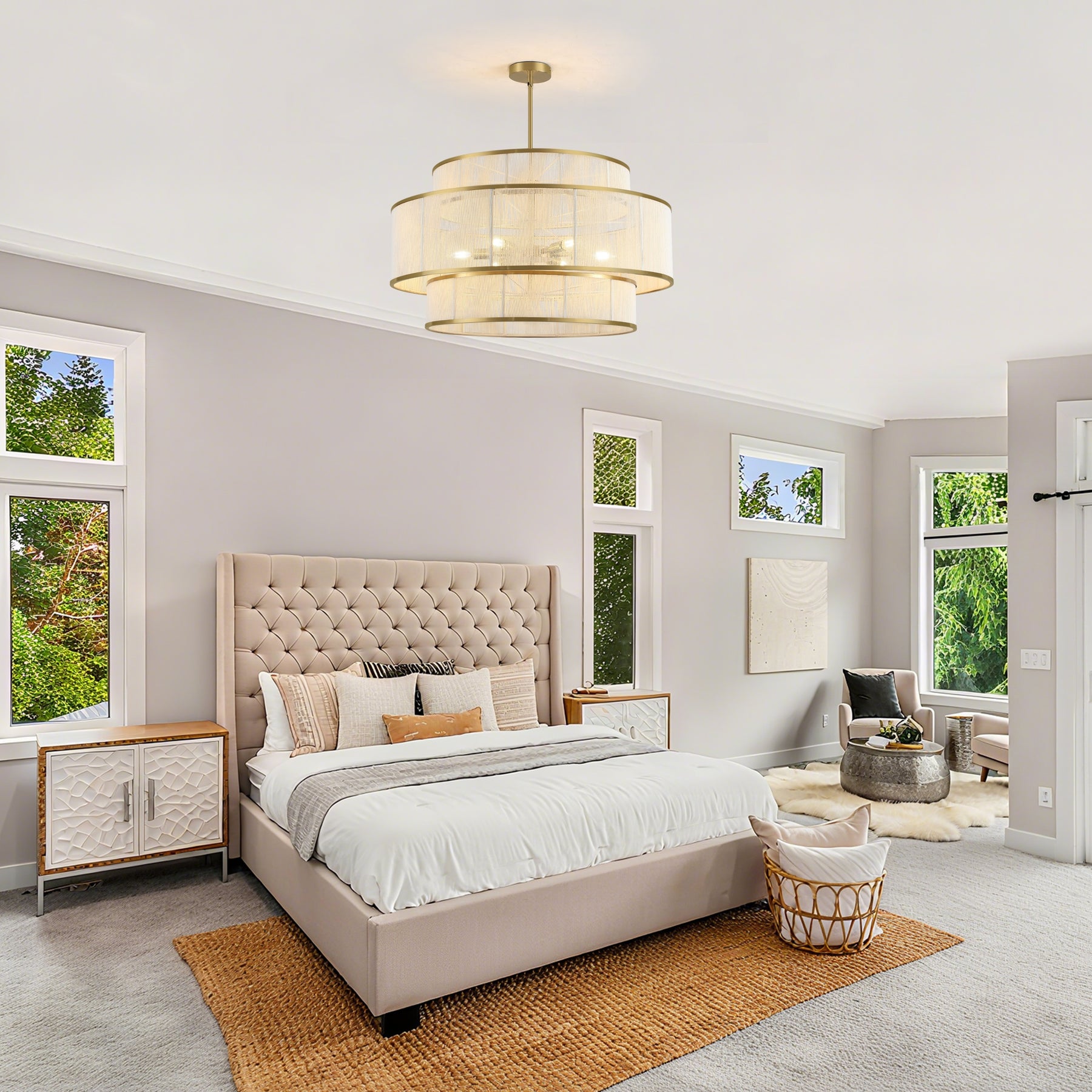 • Elegant Aesthetic: The multi - tiered design with a harmonious blend of metallic and fabric elements adds a touch of luxury and charm, easily becoming a focal point in any room.