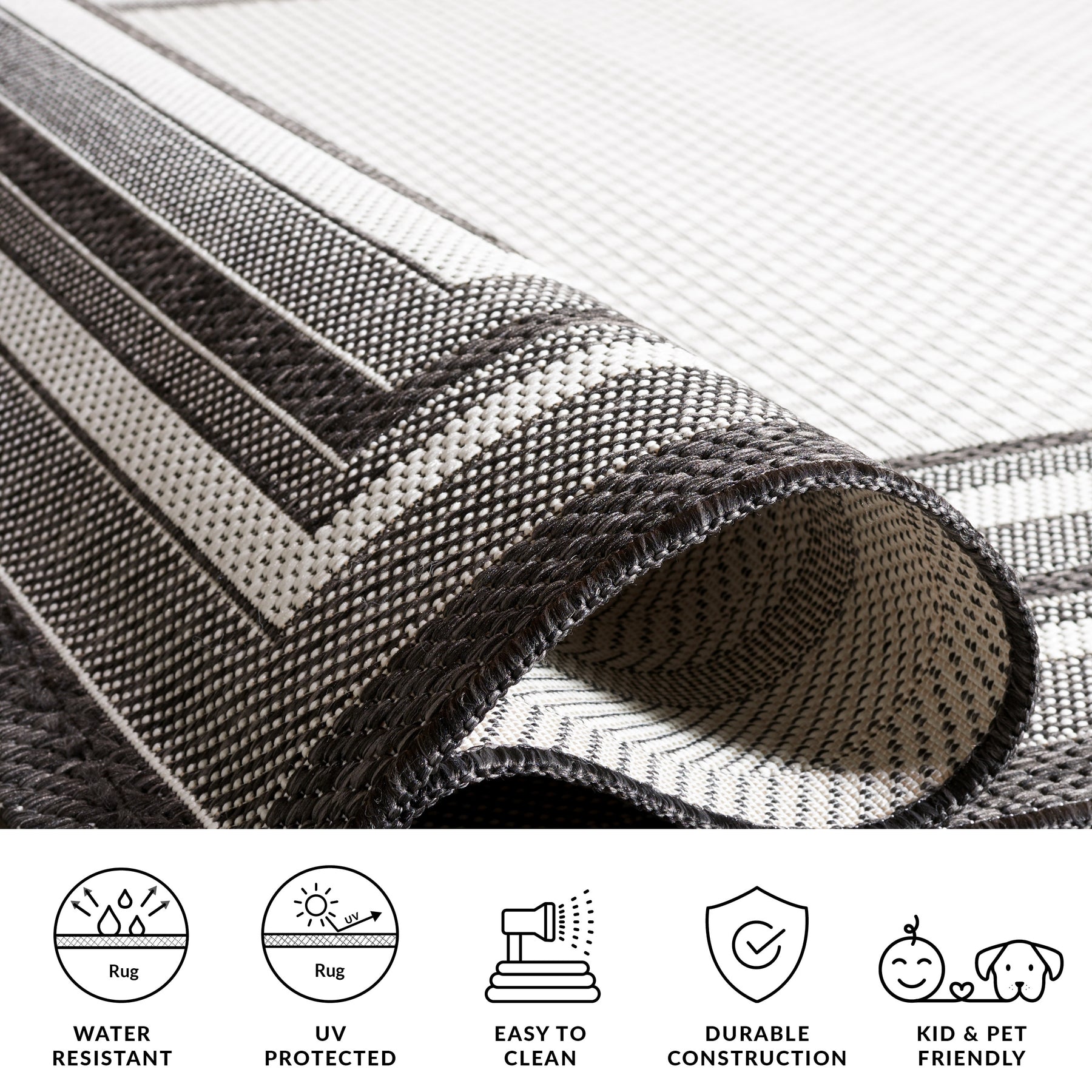 Built to withstand the wear and tear of a highly active home, this rug is ideal for replacement in any established high,traffic area, such as the patio, deck, sun room, or kitchen. Blending durable practicality with seasonal flair, this professional,use collection is the ideal compromise for those who want it all. Tie together a contemporary porch or establish visual interest in a transitional entryway with this collection's compelling aesthetics.