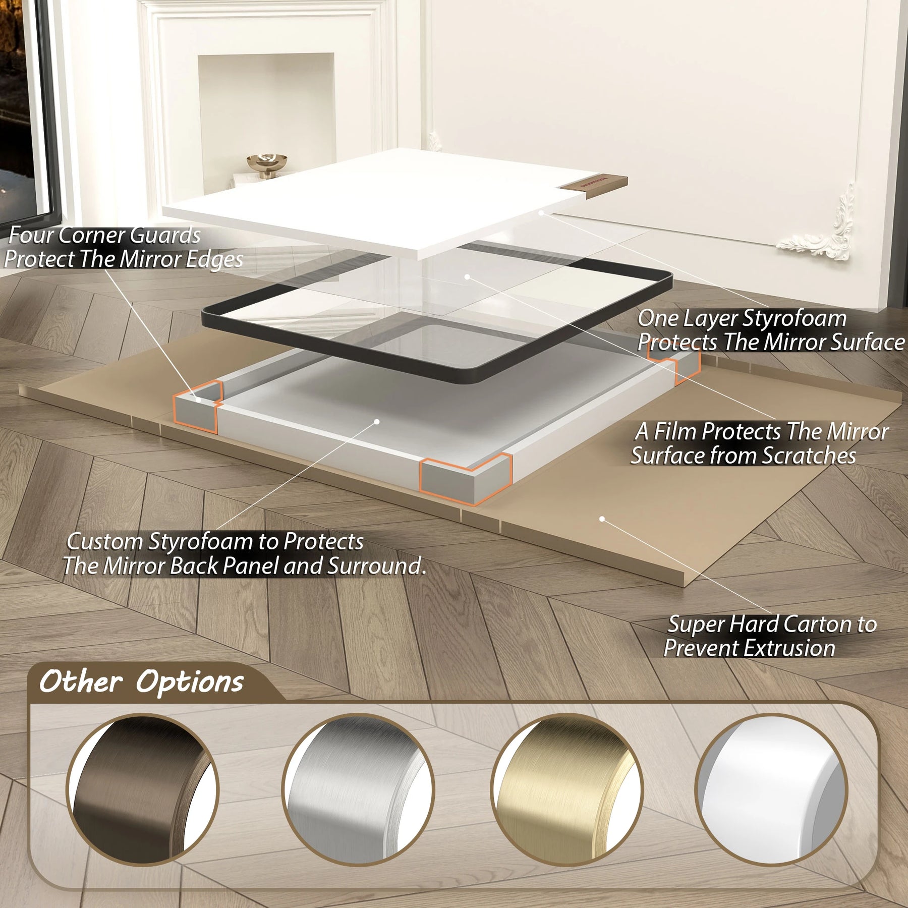 Bring sleek minimalism into your space with our high-definition mirror. Combine a brushed texture that looks like a mirror and will last a lifetime. The frame is made of durable powder-coated aluminum that will look great in any room.